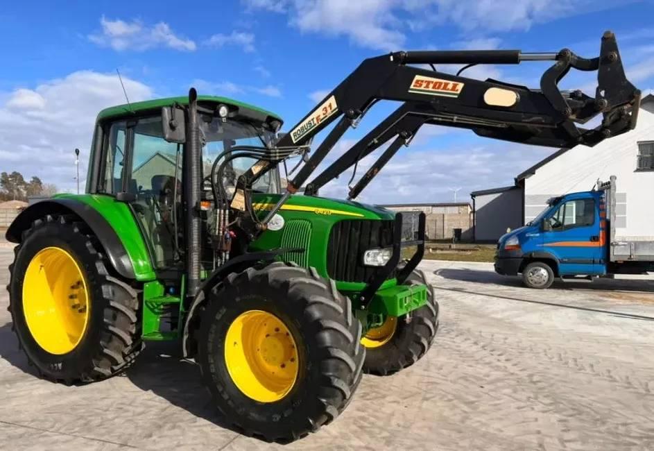 Importacion directa de Polonia. Se vende Tractor agricola John Deere 6420 Premium en ideal estado, del 2003, 120 CV, 7.812 horas, suspension eje delantero, clima, cargador frontal/ pala Stoll Robust F 31 autonivelante, caja Auto Quad 24×24, procede de Alemania. Precio NETTO.