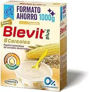 Descripción del producto Las papillas de cereales son un alimento nutritivo, equilibrado y completo que forma parte importante de la alimentación del bebé desde sus primeros meses de vida. Blevit Plus 8 Cereales es una papilla para bebés con base de harina de avena y harina de trigo. La última generación en papillas de cereales con Hierro, Vitamina D y calcio además de alto contenido en hidratos de Carbono para convertirse en una fuente de energía ideal para los niños. SIN AZ?šCARES A?‘ADIDOS: Evita que el bebé se acostumbre a sabores excesivamente dulces y al consumo habitual de los mismos. SU F?“RMULA SE ADAPTA A CADA BEB?‰: Las papillas Blevit se elaboran mediante un exclusivo sistema de dextrinación enzimática que adapta la composición de los cereales al grado de maduración digestiva de tu bebé, favoreciendo que absorba mejor sus nutrientes y consiguiendo una textura suave y homogénea. EXCELENTE VALOR NUTRICIONAL: Alto contenido de Calcio (crecimiento y desarrollo de los huesos) Hierro (desarrollo cognitivo) y Vitamina D (sistema inmunitario ). F?“RMULA EXCLUSIVA DE LABORATORIOS ORDESA: Aporta Bifidobacterium infantis IM1: Bifidobacteria patentada de Laboratorios Ordesa. CON FRUCTOOLIGOSAC?RIDOS (FOS) Y CEREALES INTEGRALES: Fuente de fibra soluble. El consumo de cereales integrales ayuda a aumentar la ingesta de hidratos de carbono complejos, y a equilibrar la alimentación. Ingredientes Harinas de cereales (harina de TRIGO INTEGRAL, harina de CENTENO INTEGRAL*, harina de AVENA, harina de TRIGO, HIDROLIZADA, harina de ESPELTA, harida de TRITICALE, harina de maíz harina de CEBADA, harina de arroz) 92%, fructooligosacáridos 3%, extracto de malta (CEBADA), minerales (fosfato cálcico, sulfato de hierro), maltodextrina, vitaminas (vitamina C, nicotinamida, vitamina E, pantotenato cálcico, vitamina B6, B2, A, B1,K, ácido fólico, biotina, vitamina D, vitamina B12), aroma de vainillina, fermentos lácticos 1x108 ufc (B. infantis IM1).* Contiene gluten. Puede contener trazas de leche. dirección Dosificación: Salvo indicación facultativa se recomienda:Biberones: Añade 1 ó 2 cucharadas soperas rasas de producto a una o varias de las tomas diarias.Papillas: Pon en un plato 200 ml de leche caliente para lactantes o de continuación (Blemil) y añade 7 cucharadas soperas rasas (30 g.aprox.) de producto.Remueve cuidadosamente hasta la obtención de una papilla homogénea. El producto presenta un sabor dulce y agradable de forma natural. No es necesario añadir azúcar. Advertencia de seguridad A partir de los 5 meses Contenido de la caja Estuche con dos sobres de 500gr de cereales (2 x 500gr)