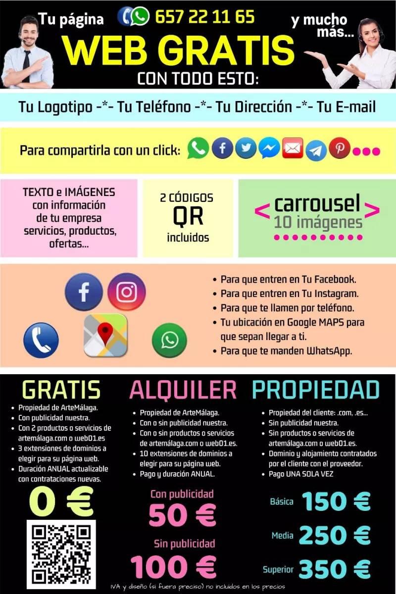 La mejor herramienta para dar a conocer tu negocio. Página web optimizada al 100% para teléfonos moviles, smartphones, ipads. Con logotipo y todos los datos del cliente, fotografias, textos, carrusel de imágenes, videos de 30 segundos... Y botones para que con un solo click tus clientes y tu podais compartirlo en redes sociales, whashap y telegram. Botones para que con un solo click tus clientes te llamen, te manden whasaps y vayan a google maps para llegar hasta a tí.