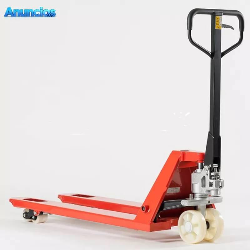 Transpaleta manual, marca NOBLELIFT, modelo HPT-A., capacidad de carga 2.500 Kgs, ruedas Nylon, rodillos dobles Nylon, bomba rápida y cromada, roldanas de entrada a palet cerrado y horquillas de 1.150 x 540 mm.